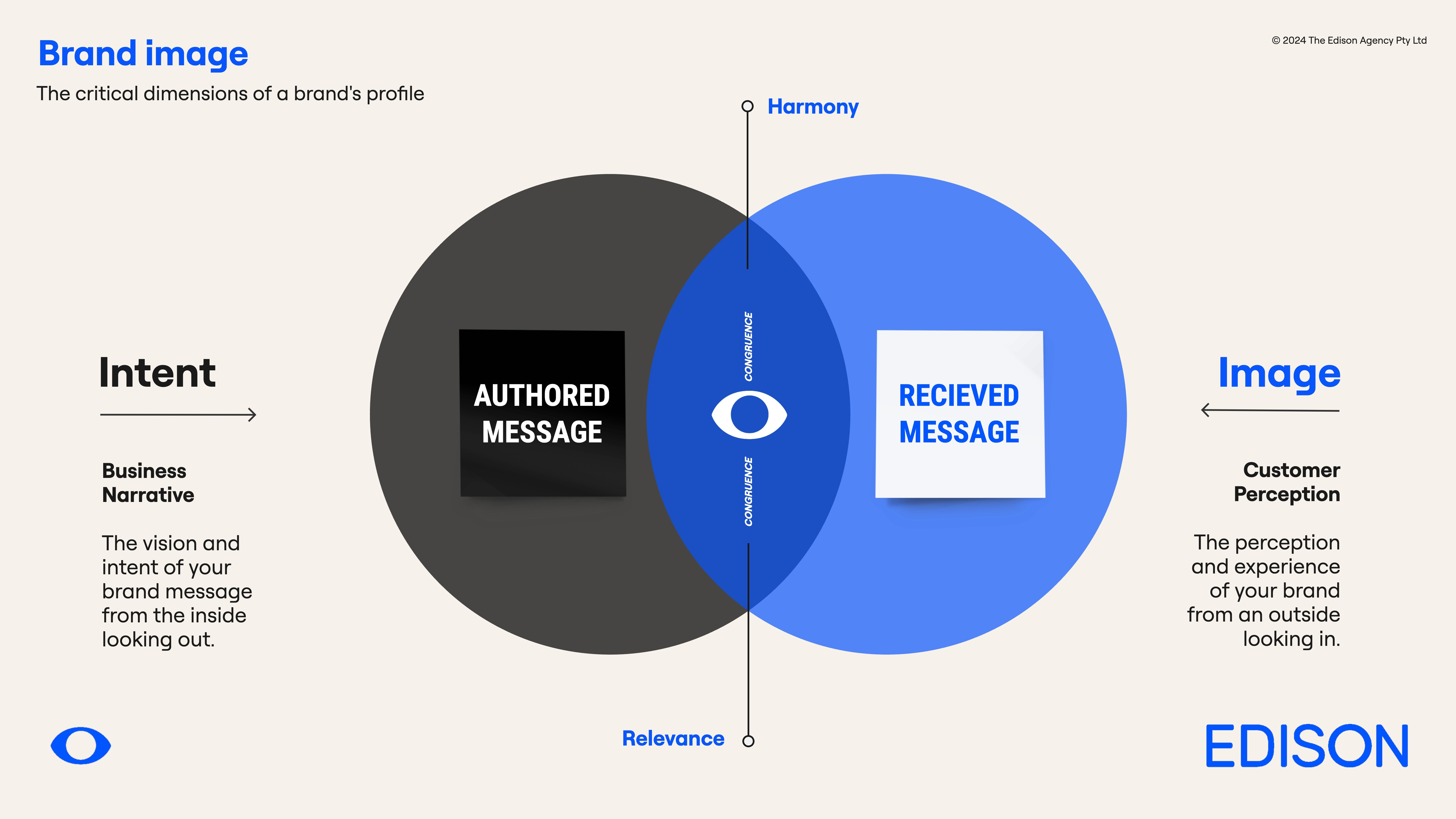 A company branded a product in the same way a cow was branded, a statement of provenance, heritage and status. Fast forward to today, brand owners don't really own their brands anymore - not really. While they are responsible for directing, nurturing and mentorship, it's now a two-way dialogue with an audience, and the sum of these over-lapping two worlds is the sweet spot of a great brand positioning that has resonance with its audience and is poised for positive change. Too far either side of the "authored intent" or "received image" and it's easy to see how the relationship between brand and customer loses its equilibrium and can lead to disconnect. Here's a simple way I use to look at this in my own work.