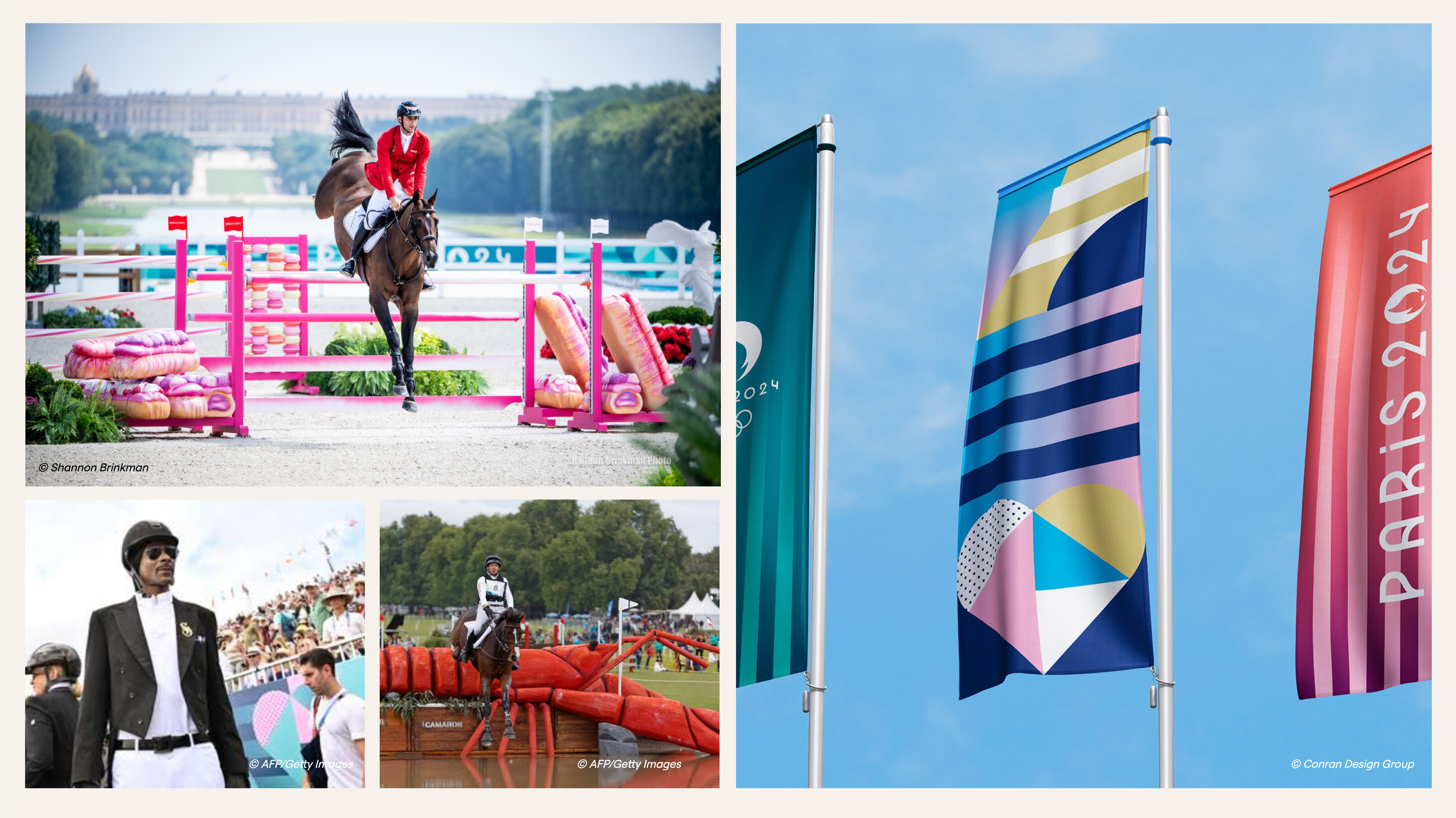 There’s a confidence in the quietness and silliness - an inclusive, anti-stuffiness that certainly elevated the spirits of those of us watching from the comfort of our lounges. One of the most spectacular expressions of this playful French frivolity were the Equestrian Show Jumping and Dressage event designs. Mimicking extroverted theatre sets, these included lobster-shaped jumping obstacles, akin to Ballina’s Big Prawn or Sunny Coast's Big Pineapple, and pink custard filled pasties hugging the jumps. It was a fantastic display of cultural creativity that was surprisingly playful in context to the rigid and elitist norms of equestrian sporting codes.