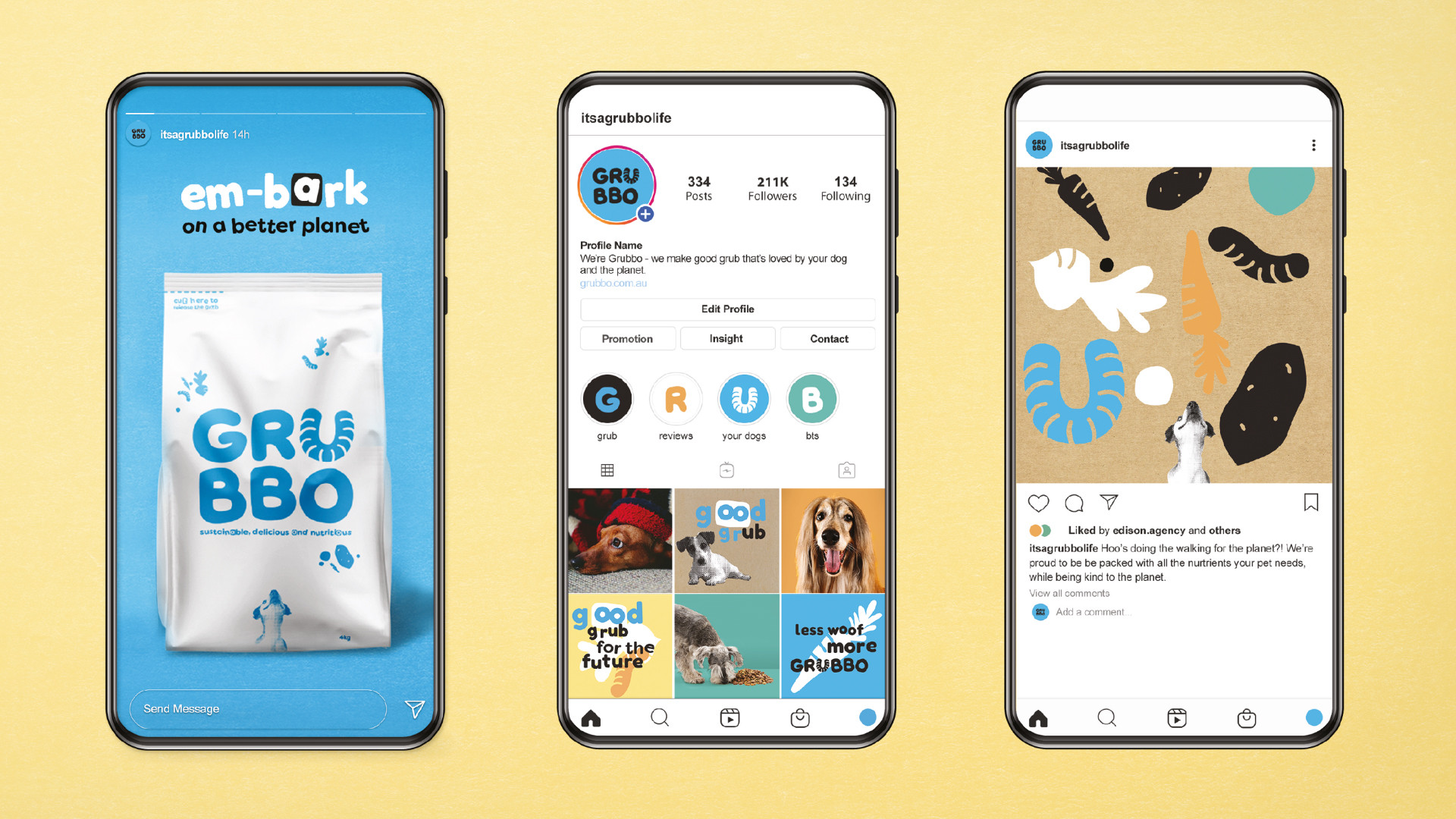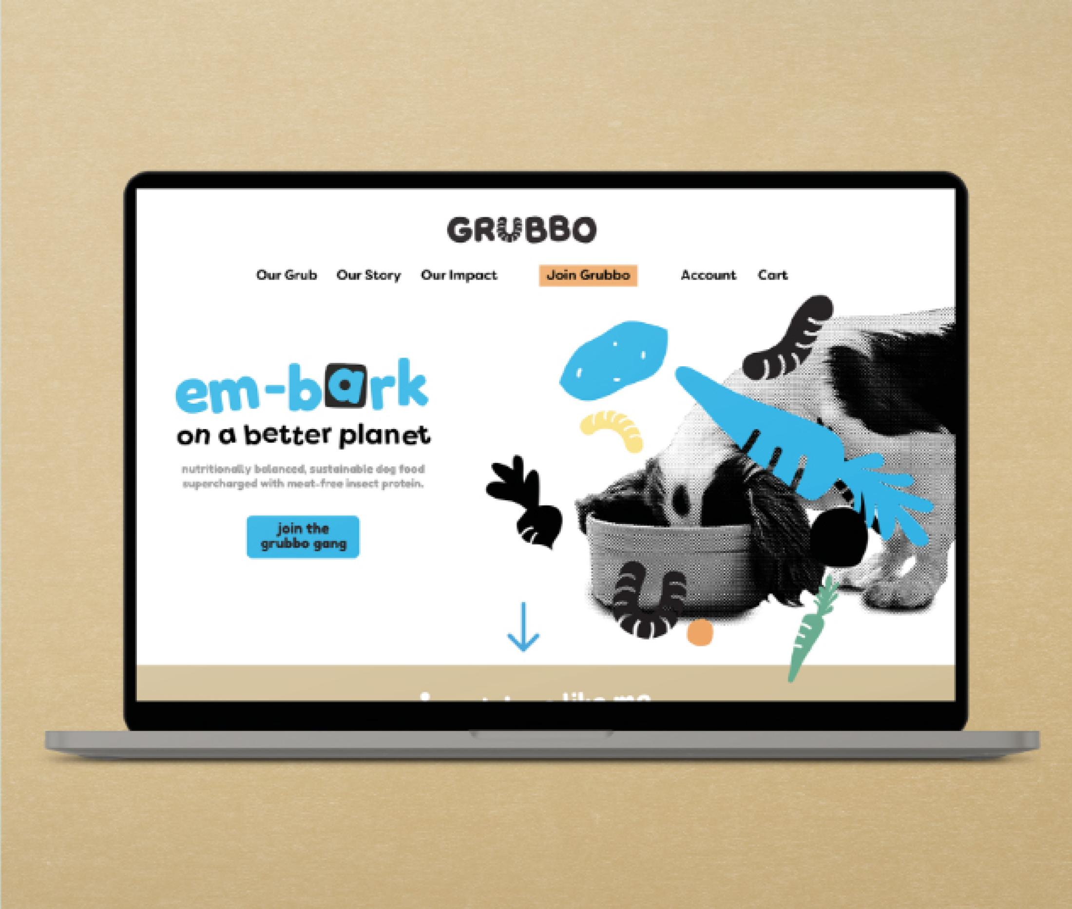 Grubbo, a new insect-based protein pet food, aimed to address urgent climate action needs. As the first of its kind in Australia and a direct-to-consumer product, Grubbo needed a unique and impactful design that pet owners would want to share.