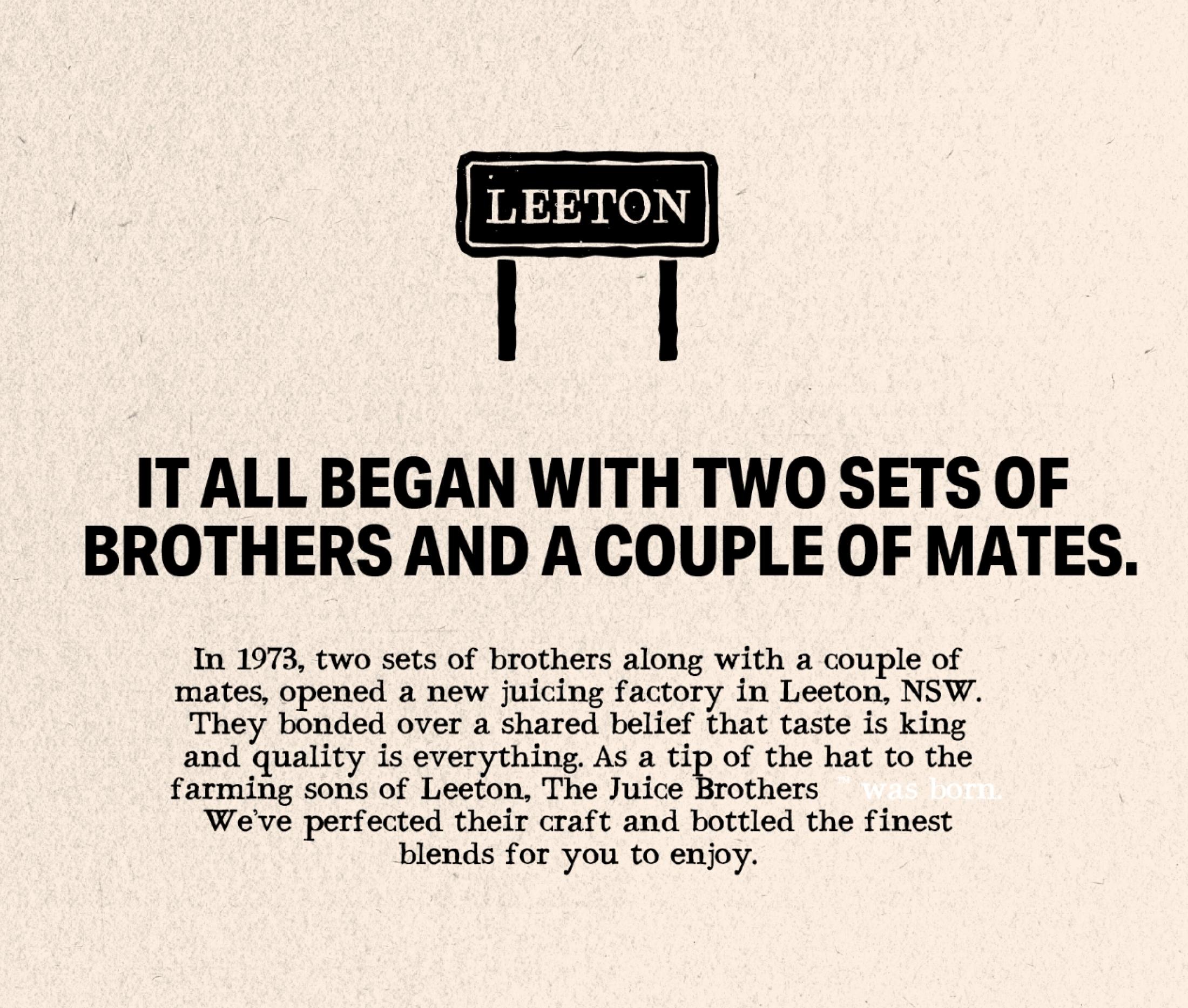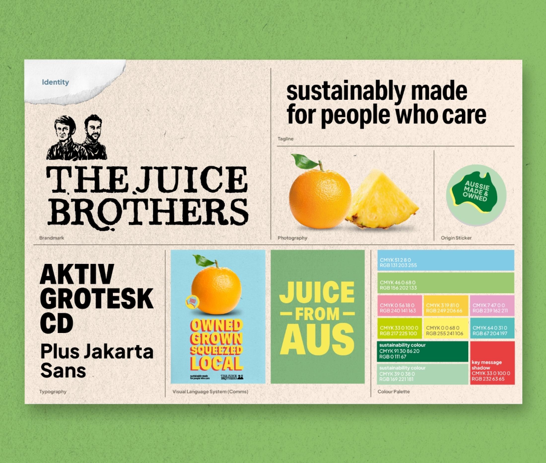 The intent was to create a compelling and distinct brand positioning that would reignite interest from both retailers and consumers. Successfully balancing the heritage of The Juice Brothers with modern sustainability values, reinforcing the brand's taste credentials and its Australian roots.