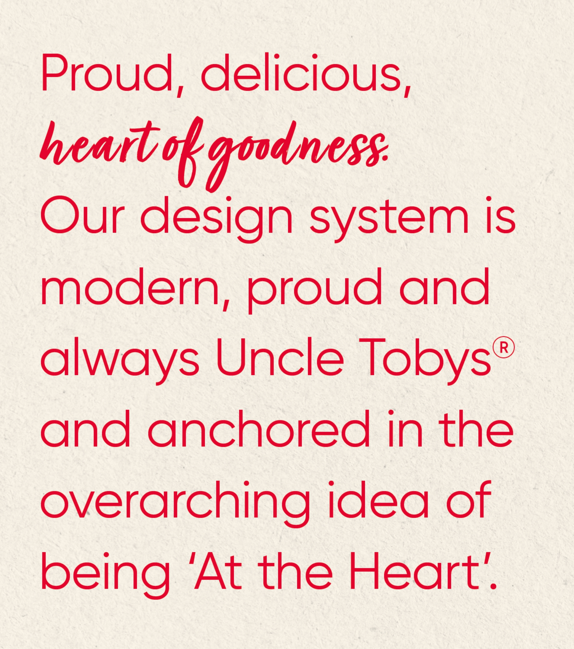 Collaborating on the strategic direction for the brand with communication agency partner, Ogilvy, PR Agency Forward and London-based innovation agency Eat Big Fish, Edison created a bold step forward for UNCLE TOBYS. Designed to have impact far and wide - on trucks, in pantries, on silos and on digital and print advertising, the new brand system celebrates what people love and remember about UNCLE TOBYS.